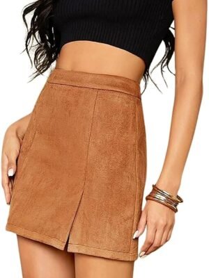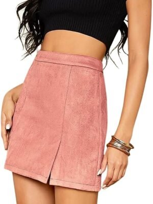 Women’s High Waist Faux Suede Side Split Bodycon Short Mini Skirt