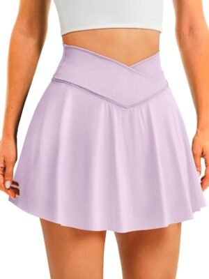 Womens Tennis Skirt with Pockets Shorts Crossover High Waisted Athletic Skorts Skirts for Golf Running Workout