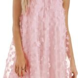 - The fashion halter neck dress is made of terylene fabric, with a layer of 3D flower appliques tulle on the outside, giving a more three-dimensional and textured feel.