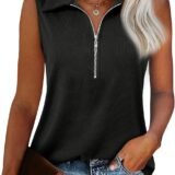 - Timeless Design: Womens tank tops,Probe into the charm of zipper tops – a classic and fashionable piece. With a polo shirt style, v neck, zipper collar, sleeveless, ribbed texture, solid color and tunic shape yet loose fit curve hem, simple, trendy and work casual style. It fits perfectly and in all the right place, flattering to any figure, which decorate your tummy well to make you look slimmer. These summer tank tops for women are effortlessly versatile