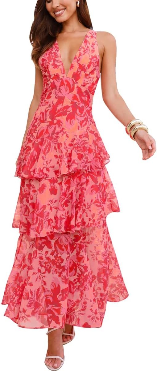 - Fabric: Women Deep V Neck Maxi Dress is made of polyester, elastane, soft and comfortable to touch, chiffon fabric is lightweight, breathable and wrinkle free, so you can stay cool in the summer.